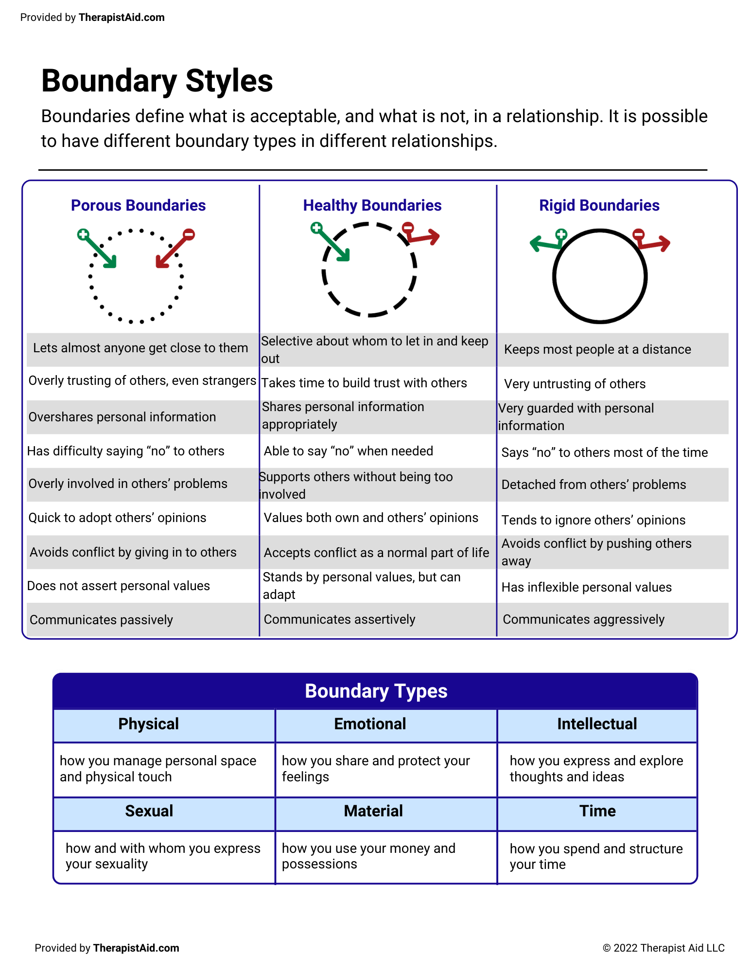 Examples of Healthy Boundaries: