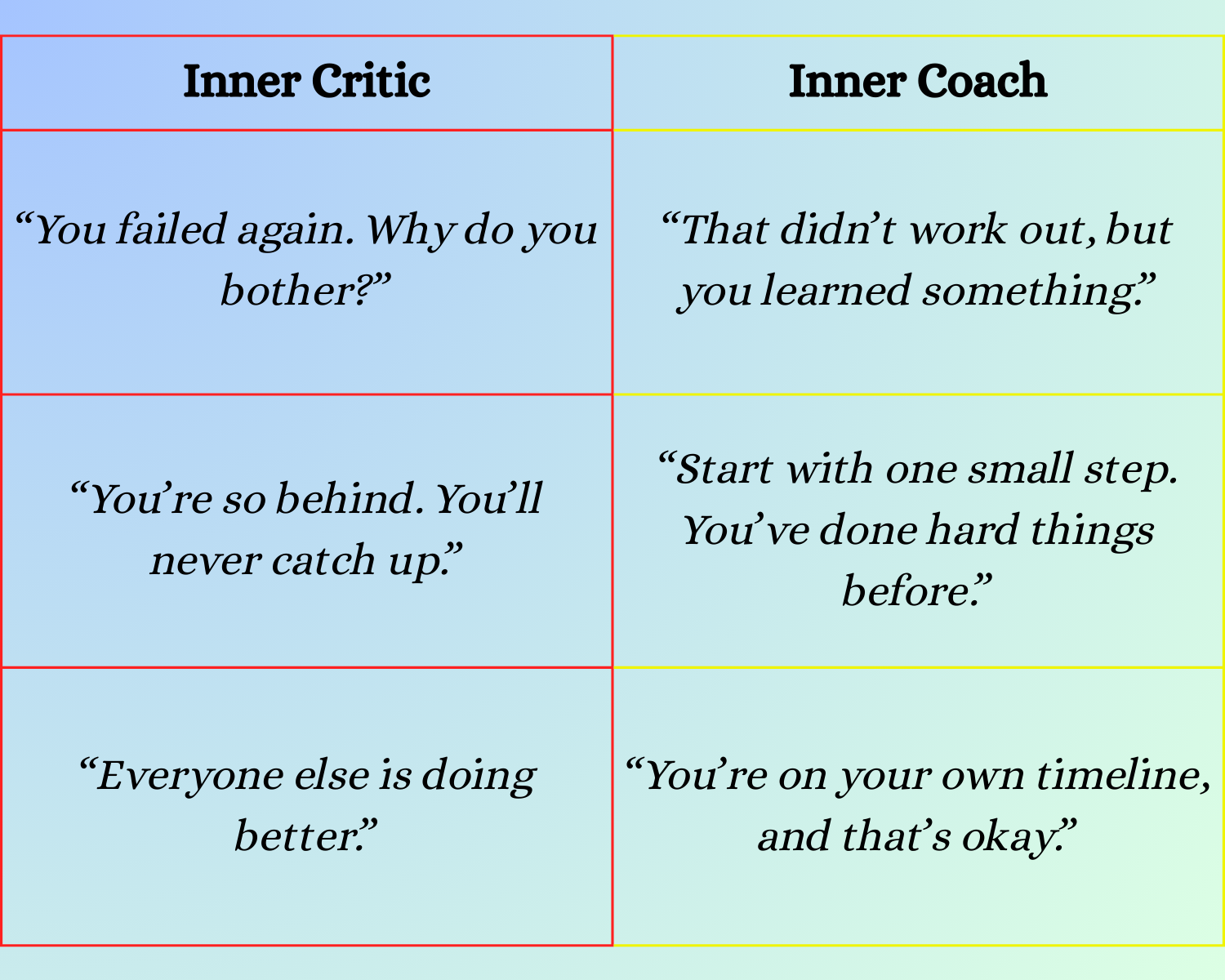 This isn't about silencing the critic. It's about bringing in another voice: one that reminds you you're growing, you're trying, and you're worthy, even on the messy days.